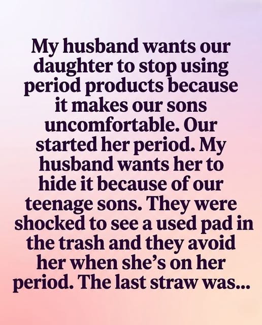 The moment everything cracked came on an ordinary Tuesday. What should have been a simple, caring suggestion turned into something else entirely. She was told to stay in her room while on her period—not as an act of comfort, but as a way to keep her out of sight. The message landed hard: this part of you is not welcome here. She didn’t argue or protest. She simply withdrew, carrying not just physical discomfort, but a deeper hurt—the feeling that she no longer fully belonged in her own home.